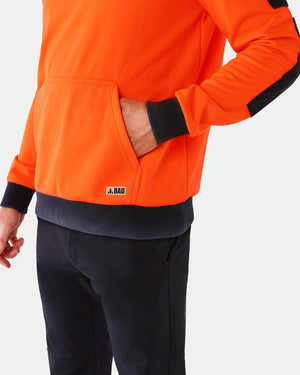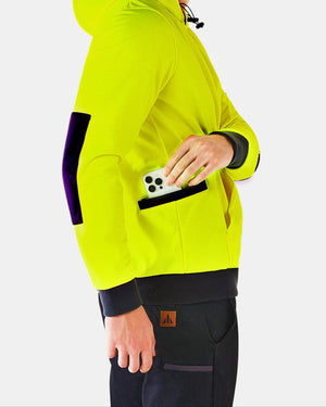 Built with a cutting-edge bonded membrane fleece material, this hoodie is windproof, highly water resistant, and designed to handle real job site conditions. Every feature has been tradie-tested and refined to deliver serious warmth, durability, and all-day comfort. Whether you’re working through icy winds or sudden downpours, this hoodie is made to keep you dry, warm and moving.